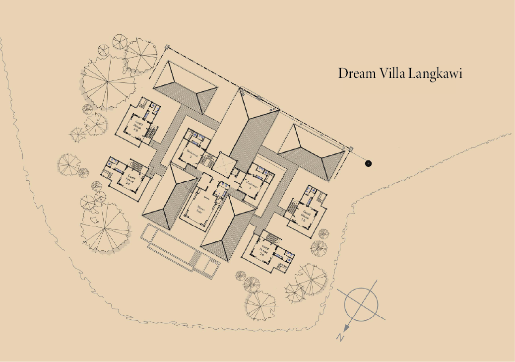 Nestled along the serene coastline of Langkawi, Dream Villa Langkawi is a private estate that brings together timeless elegance and natural beauty. Spread across more than 5,000 square metres of lush tropical grounds, this seafront haven comprises a grand central residence and four thoughtfully designed pavilions — each offering spacious, luxurious accommodations tailored for both relaxation and connection.